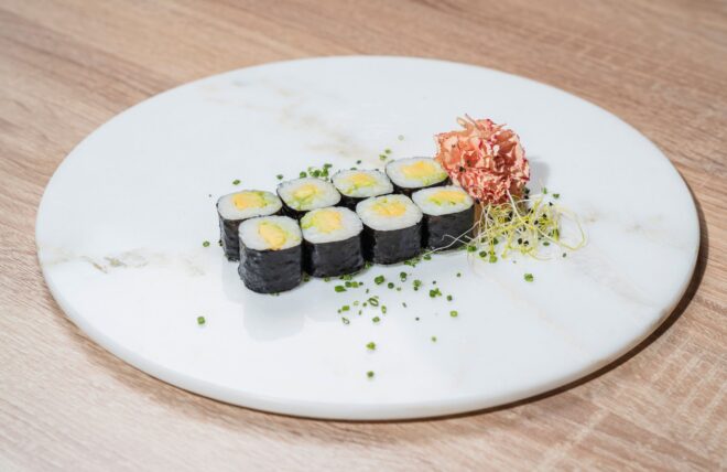 Die Sushi Klassiker Maki, Nigiri, Inside Out Rollen und mehr findest du auf unserer Speisekarte. Darüber hinaus kannst du zwischen Vorspeisen wie Bowls, Suppen, Frühlingsrollen und Salaten wählen. Um das Essen abzurunden, bieten wie verschiedene Varianten von süßem Sushi und Mochi an.